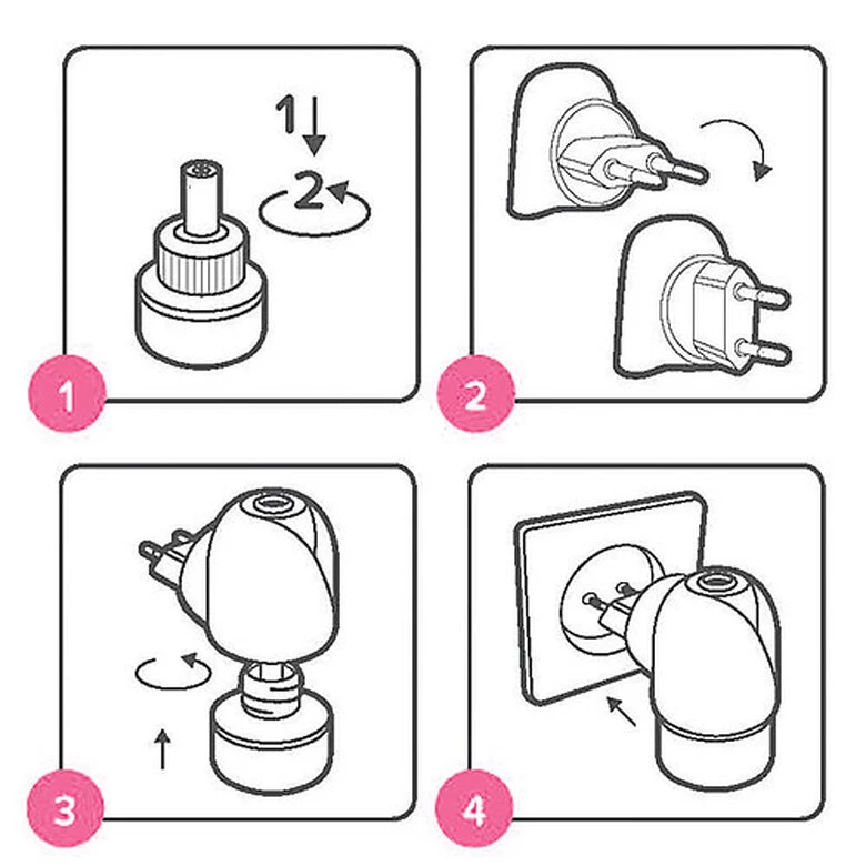 Enlever le bouchon, visser la recharge sur le diffuseur CaniComfort(TM) et le brancher sur une prise de 230V uniquement. Ne pas utiliser avec une multiprise, une rallonge, un adaptateur ou un transformateur. Lire la notice avant utilisation.