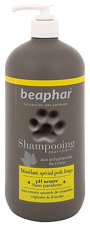 | Plus Produit | Idéal pour les chiens aux poils longs – Aux polyphénols de raisin – PH neutre – Sans parabens |