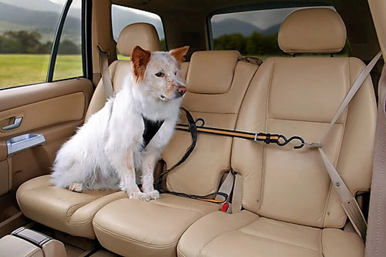 La tyrolienne de sécurité ZIP LINE s’attache simplement à deux points fixes, ce qui permet d’attacher le chien en un tour de main. Elle permet de maintenir le chien à l’écart du siège avant et l’empêche de sauter du véhicule lorsque la porte est ouverte, tout en le laissant libre de se déplacer d’une fenêtre à l’autre de la voiture, en toute sécurité.