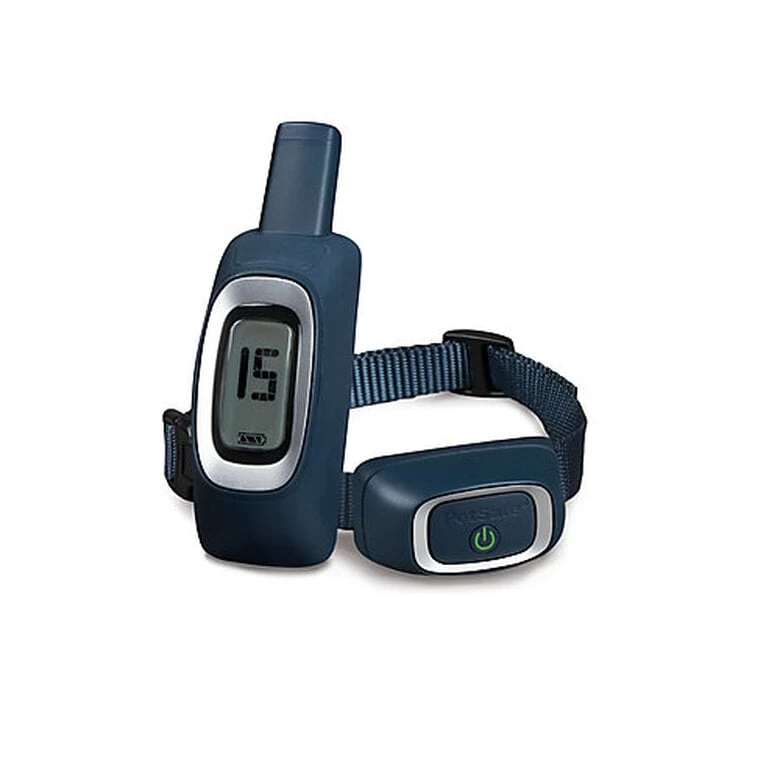 La télécommande transmet un signal au collier du chien, via l’un des trois modes de communication (signal sonore, vibration ou stimulation). Grâce à sa forme ergonomique et son revêtement doux, la télécommande est pratique et très maniable. La sangle du collier est en nylon et le boîtier est imperméable pour une utilisation même par temps de pluie.
