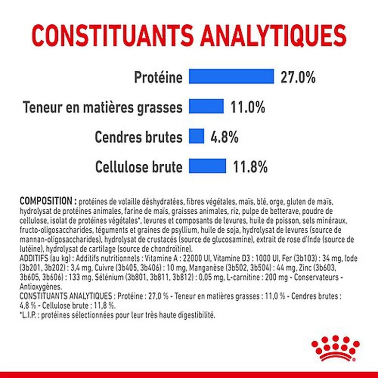 RÉDUIT L’APPORT CALORIQUE : L’excès de poids peut àªtre préjudiciable à la santé globale de votre chien.
