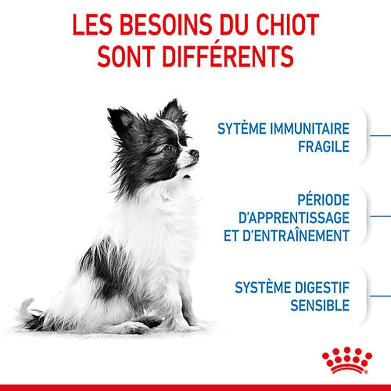 Les croquettes Royal Canin X-Small Puppy sont spécialement formulées pour répondre aux besoins nutritionnels des chiots de très petites races. Cette formule convient aux chiots âgés de 2 à 10 mois qui devraient atteindre un poids adulte de 4 kg maximum.
