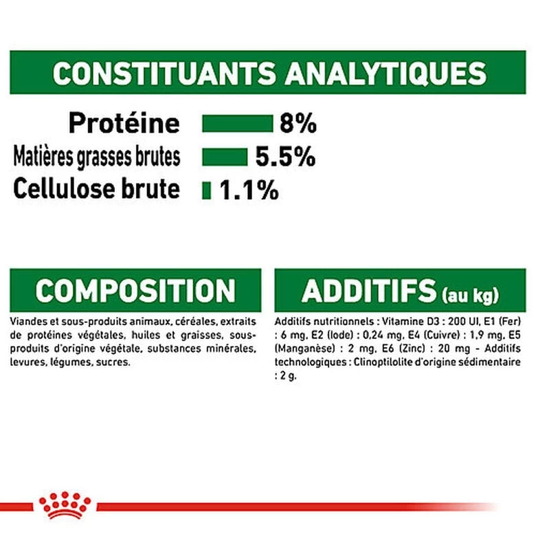 Pour répondre aux préférences individuelles de chaque chien, ROYAL CANIN Mini Ageing en sauce est également disponible sous forme de croquettes croquantes et savoureuses. Si vous envisagez une alimentation mixte, il vous suffit de suivre nos instructions pour vous assurer que votre chien reçoit la quantité d’aliments secs et humides adéquate pour un bénéfice optimal.