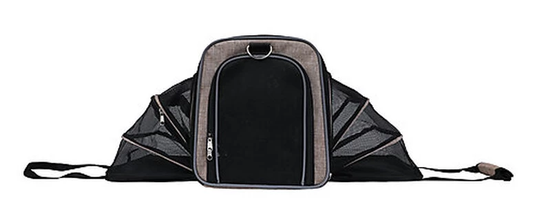 Sac de transport camping pratique et confortable pour chiens en position fermée, pour être utilisé en sac de transport classique ou ouverte pour un plus grand espace tout en restant sécurisé.